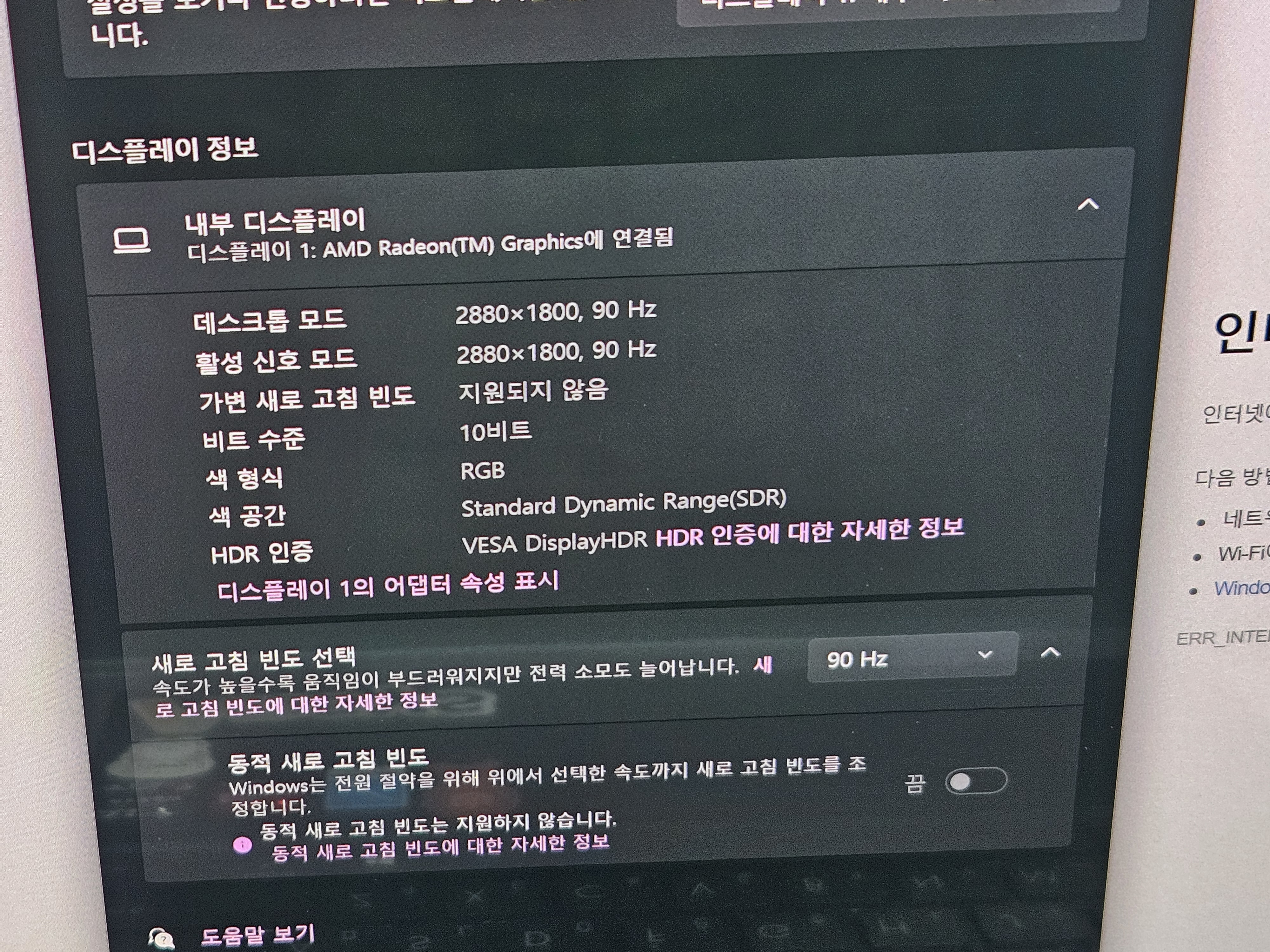 해상도 2880x1800(WQXGA+), 밝기 550nit, 주사율 90Hz, OLED 패널