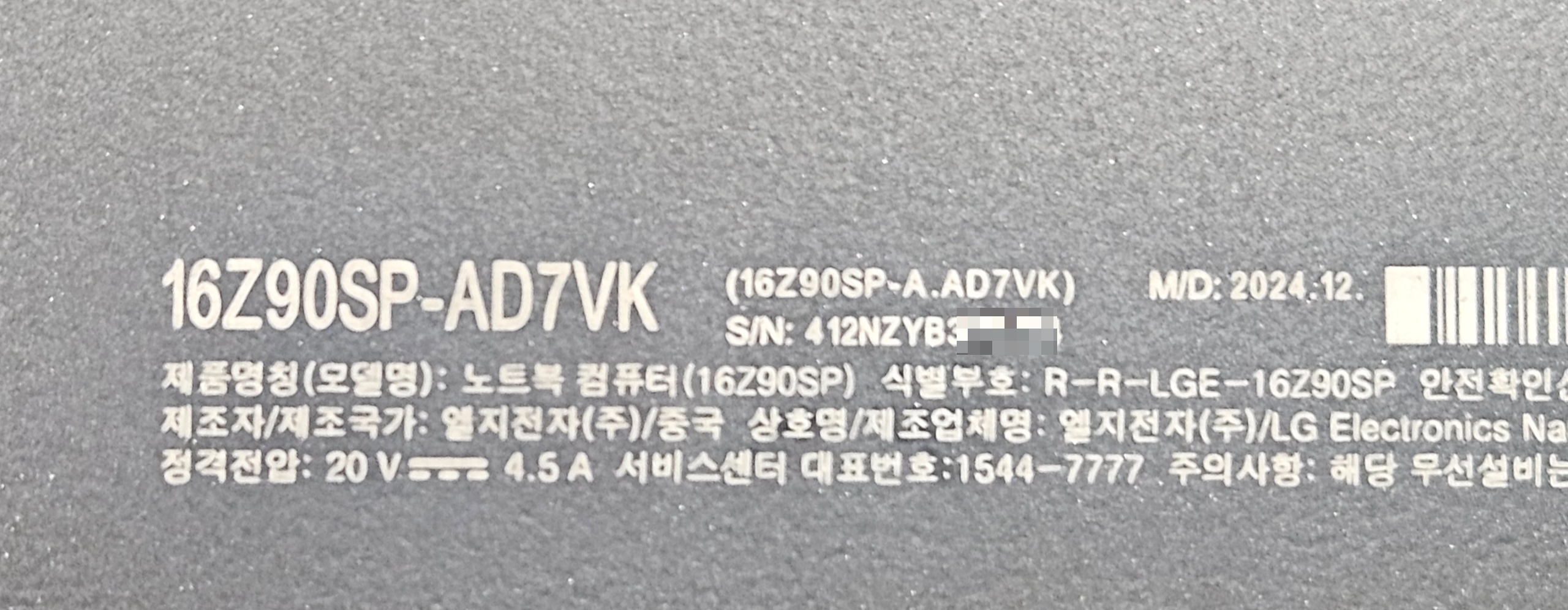 그램 노트북 뒷면을 보면 가운데 쯤에