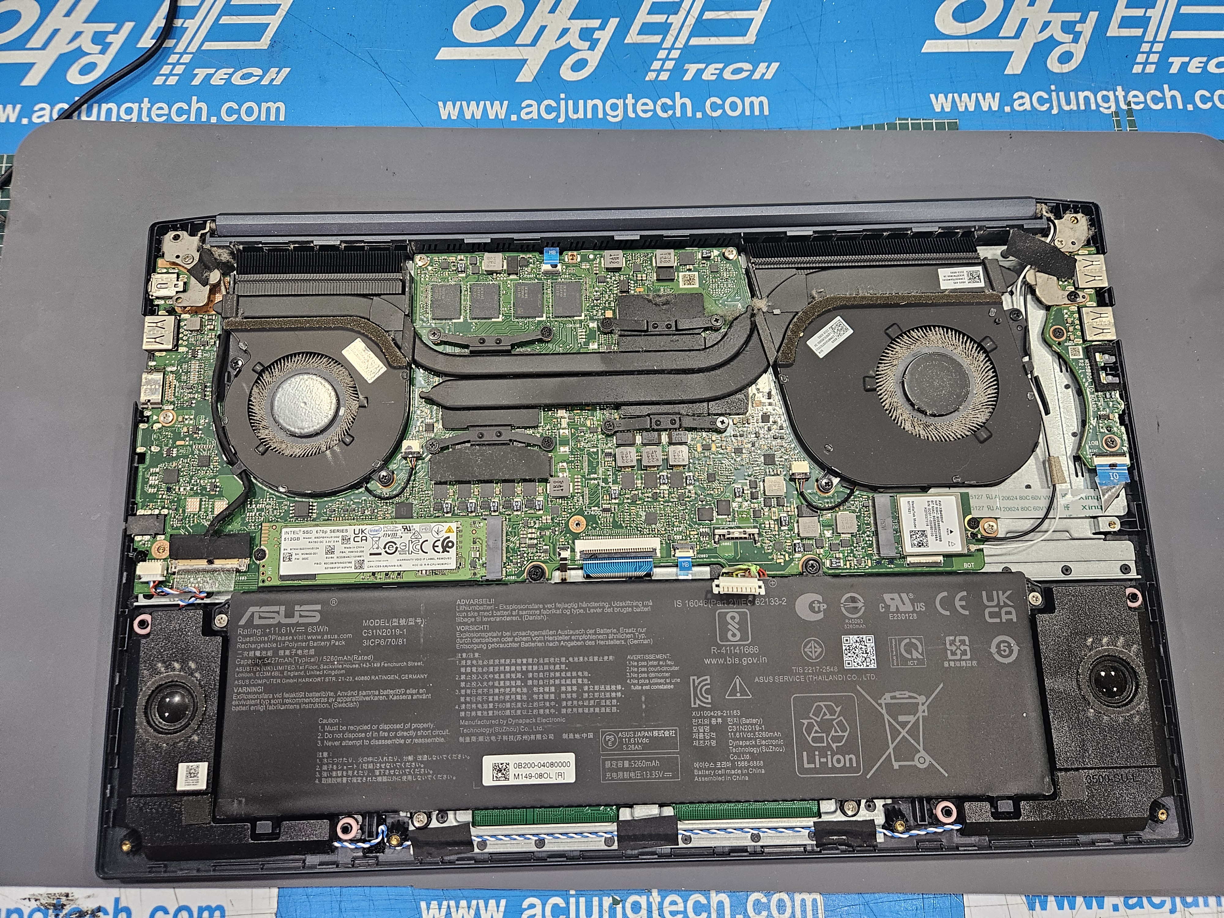 ASUS Vivobook Pro 15 OLED M3500Q 분해 후 내부 모습이에요.