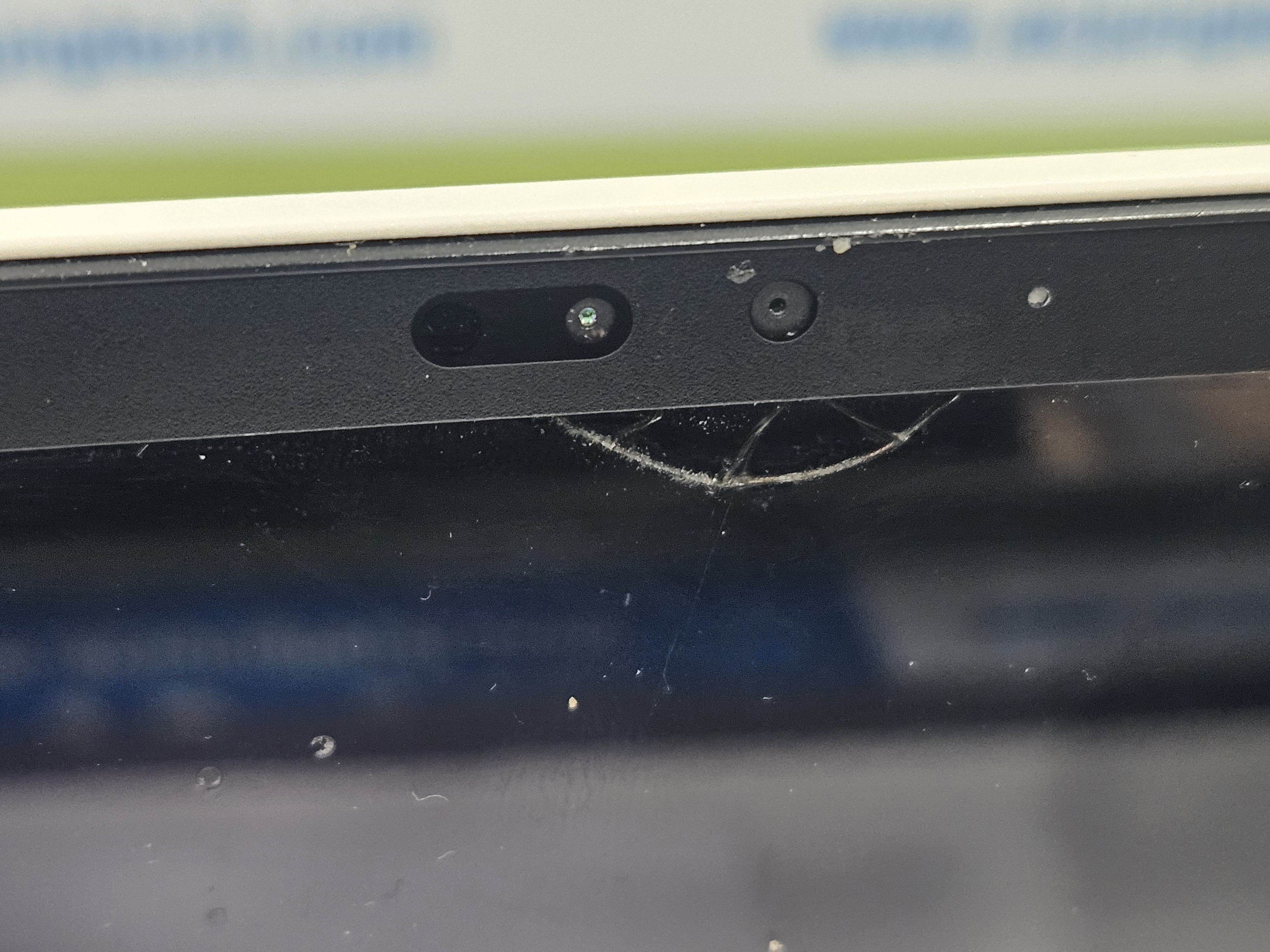 카메라 아래쪽 베젤 부분 OLED가 깨진 상태입니다.